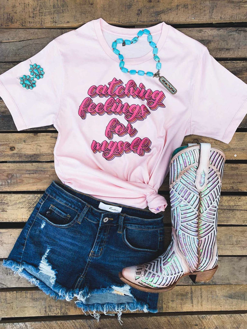 YASS QUEEN! We are “Catching Feelings” for this TEE! Printed right here custom to order in Texas, USA! True to size, crew neck. Go with your regular T-Shirt size.