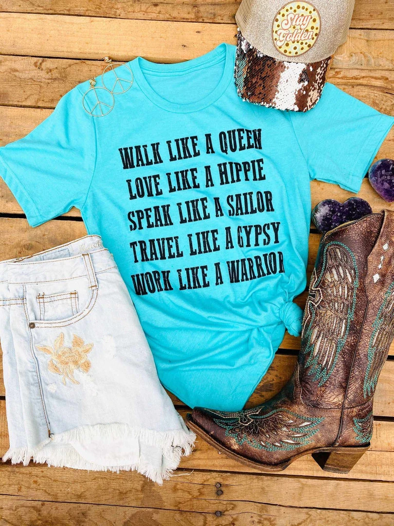 “Walk Like A Queen, Love Like A Hippie, Speak Like A Sailor, Travel Like A Gypsy, Work Like A Warrior”
