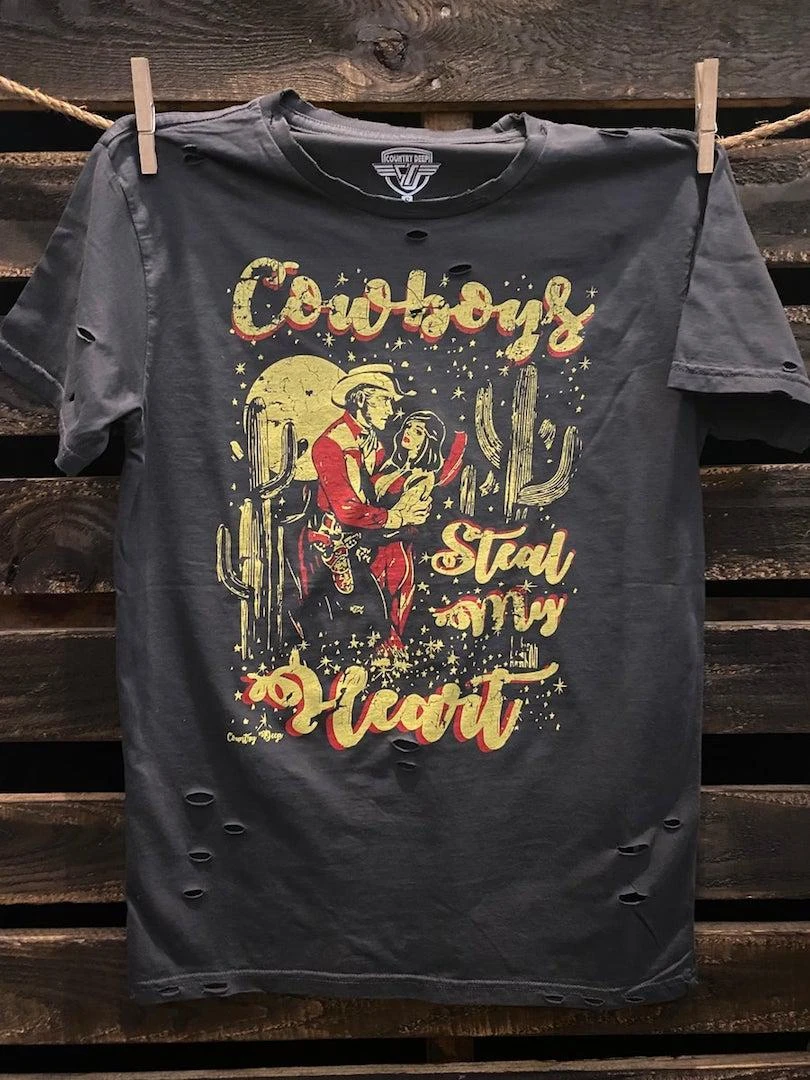 Cowboys Steal my Heart vintage distressed 1980’s unisex T shirt available in faded black