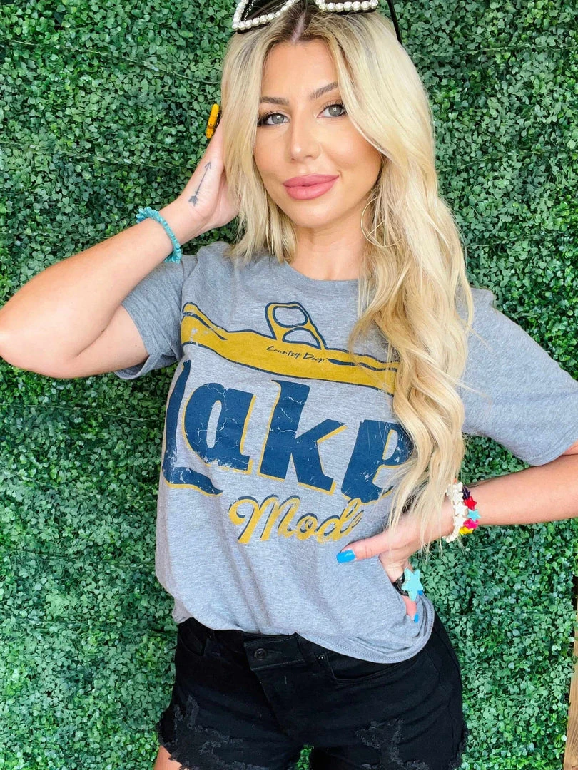 Lake Mode T shirt. If you love having a party on the lake we have the tee for you! This vintage vibe is a must! Perfect with your favorite beer in hand and your lake apparel.
