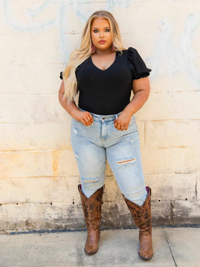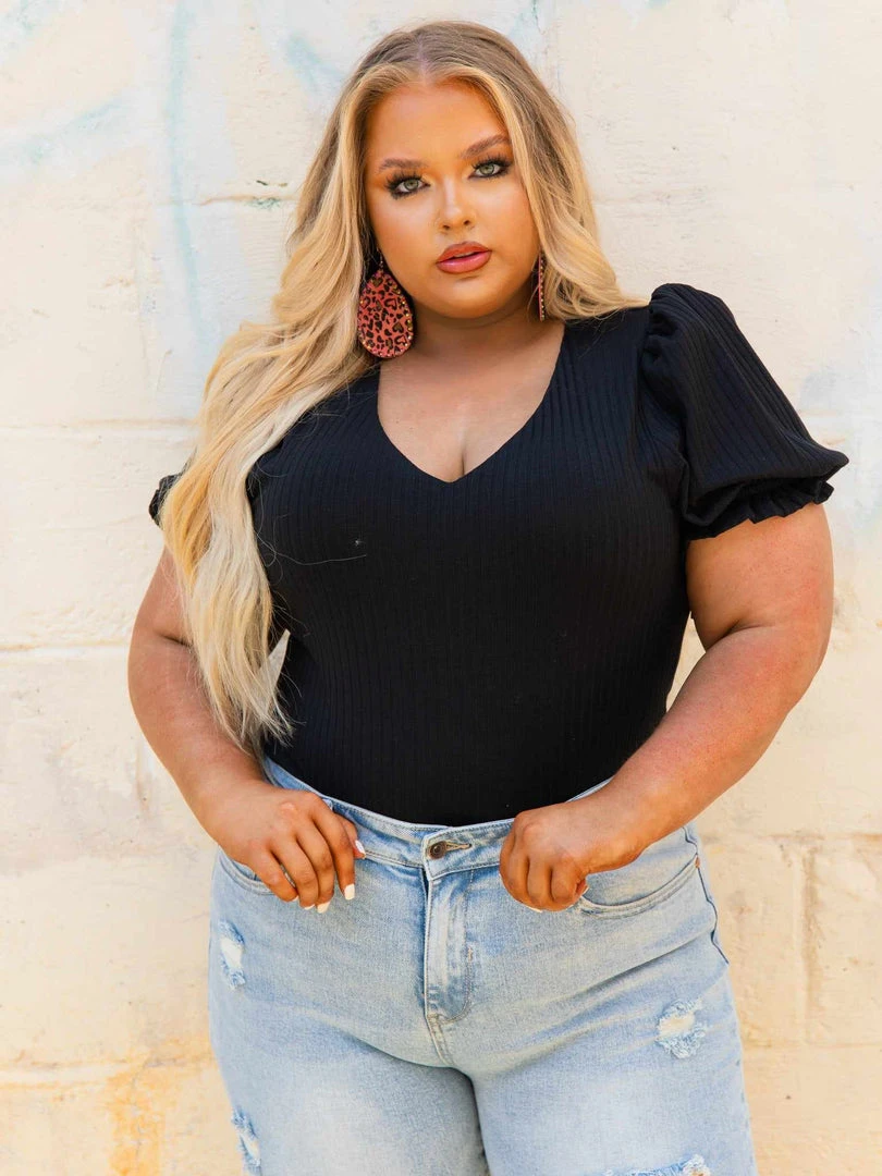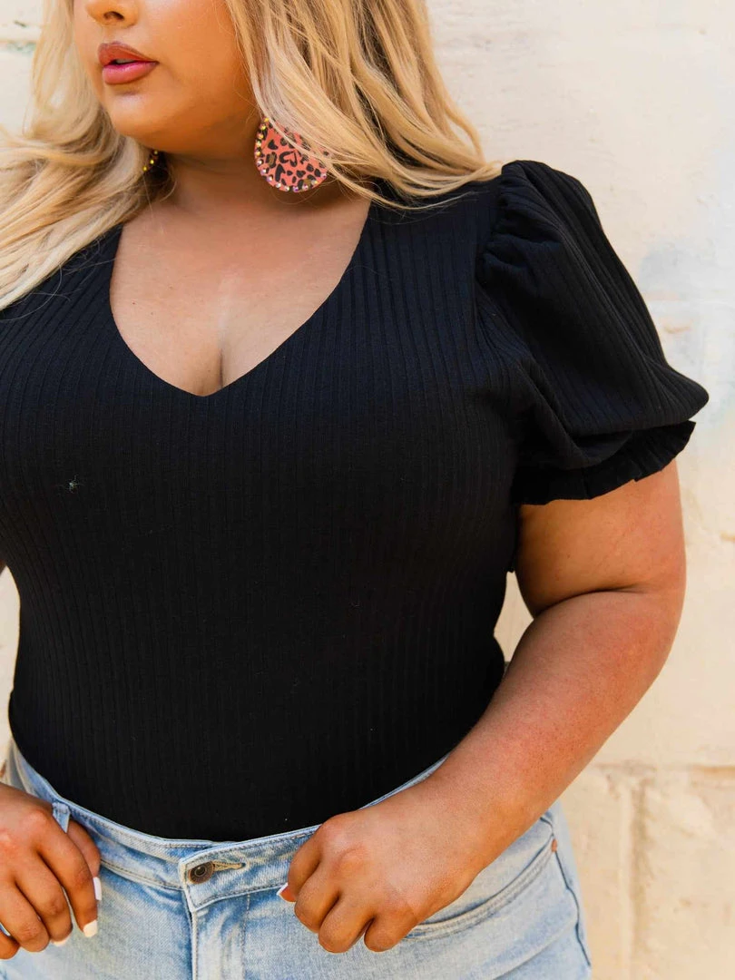 Our Bubble Bodysuit is gonna have you feeling snatched! This bodysuit features a v-neckline and bubble sleeves. The material is stretchy, forgiving and super flattering! True to size.