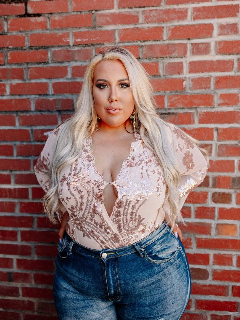 Be sassy in a Rose Gold Enchanted Nights Bodysuit! Makes you look fabulous anywhere you go! If you are a soon-to-be bride, perfect for all of your bridal events! Be daring or classy with the snap closure. Make your own style with its seamless sleeves and stunning details! A bodysuit that you will not regret. Ever.