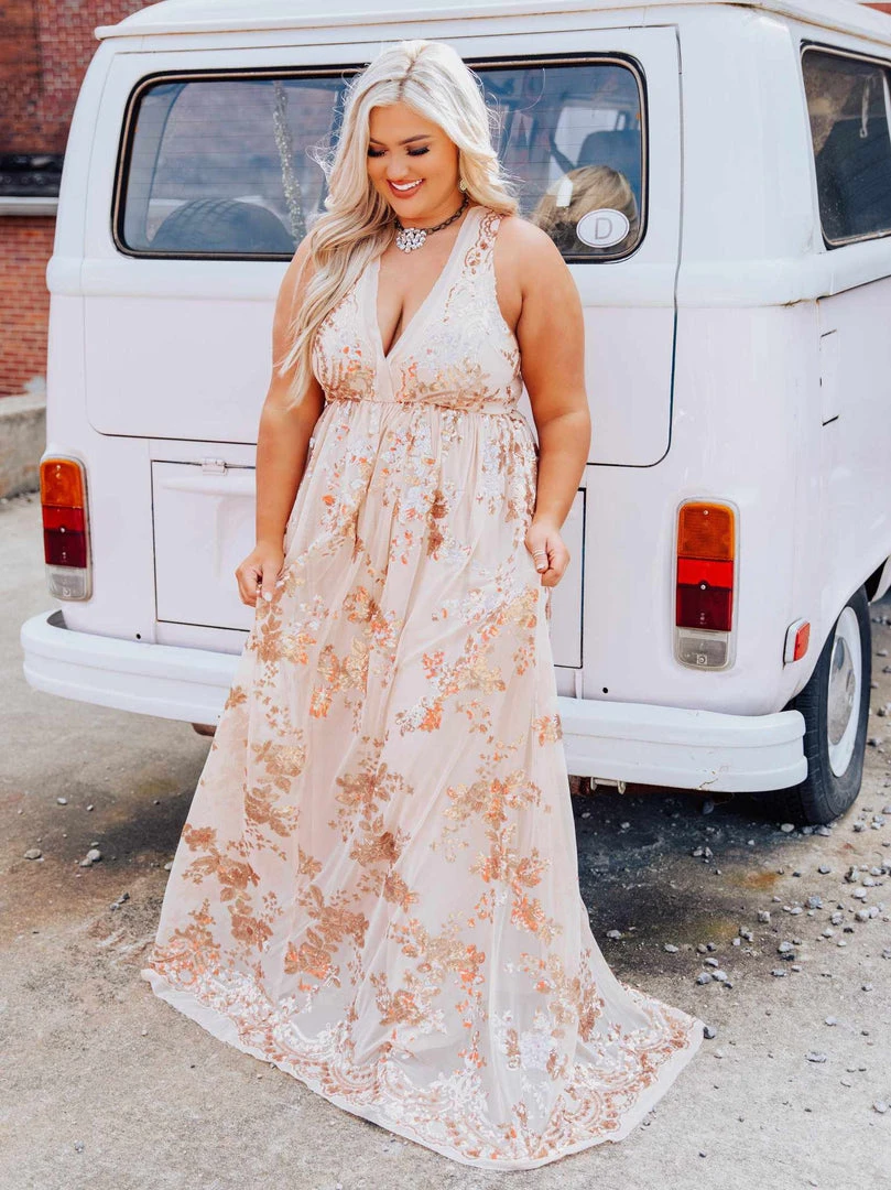 Be the goddess of your hometown with this gorgeous Curvy Chic Approved Southern Fried original. Designed by our owner Liz, this show-stopper of a dress features a plunging v-neckline, zipper back, and detailed sequins throughout. It’s fitted at the waist, but its got a little bit of stretch to it so you have some room to move while ruling your kingdom. This dress is made to be altered to fit you perfectly if needed.
