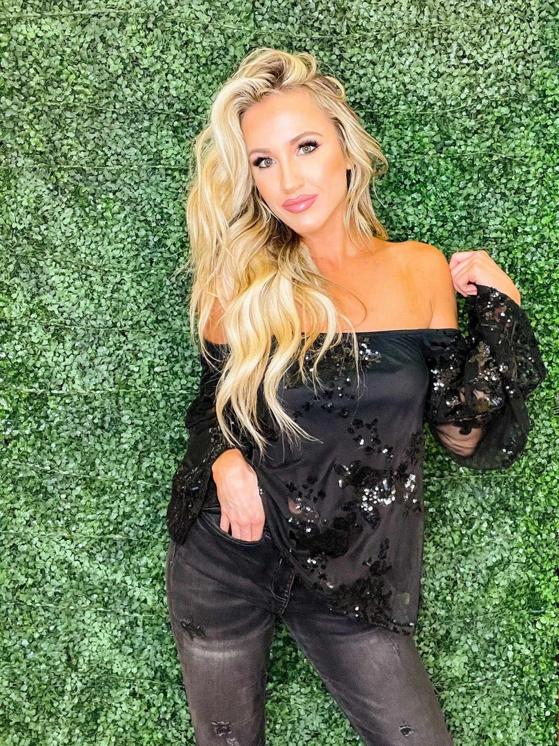 Talk about all the SASS! So cute and so trendy, the “Sequin Talk About It” off-shoulder top is fabulous for anywhere you go! The top is perfect dressed up or make it more casual with your denim cutoffs! The bell sleeves are seamless and so elegant. The details are stunning! You will not regret this! Designed by our owner, Liz, and part of the Chics Collection.