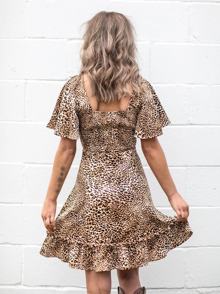 Leopard Print Dress with Flutter Sleeves