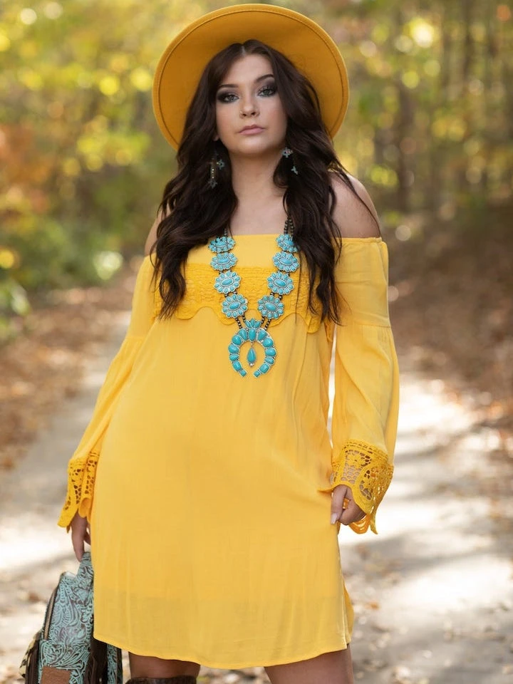Lace give ’em something to talk about this season! We are lovin’ this off the shoulder cutie! Our Lace Talk About It Dress is a true SHOWSTOPPER! Lace crochet detail gives a flirty & fun vibe that is perfect for the Spring & Summer season! Wear it as it is or you can style it with your favorite leggings or denims!