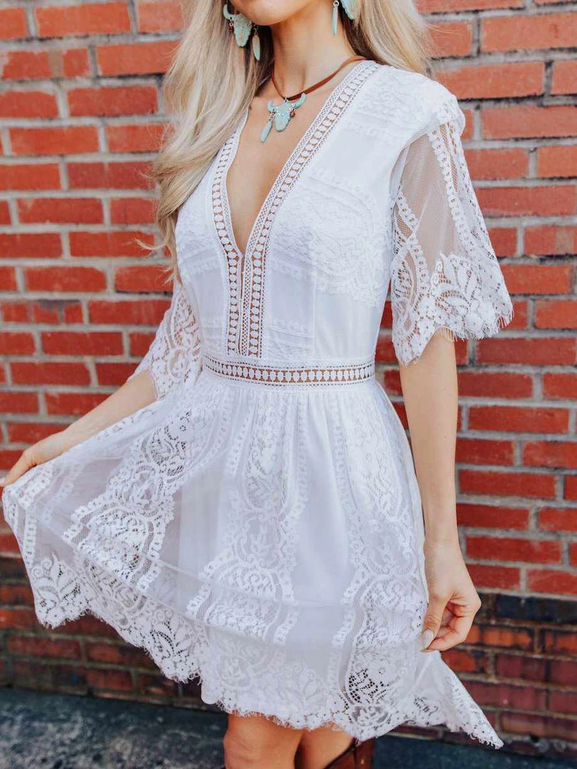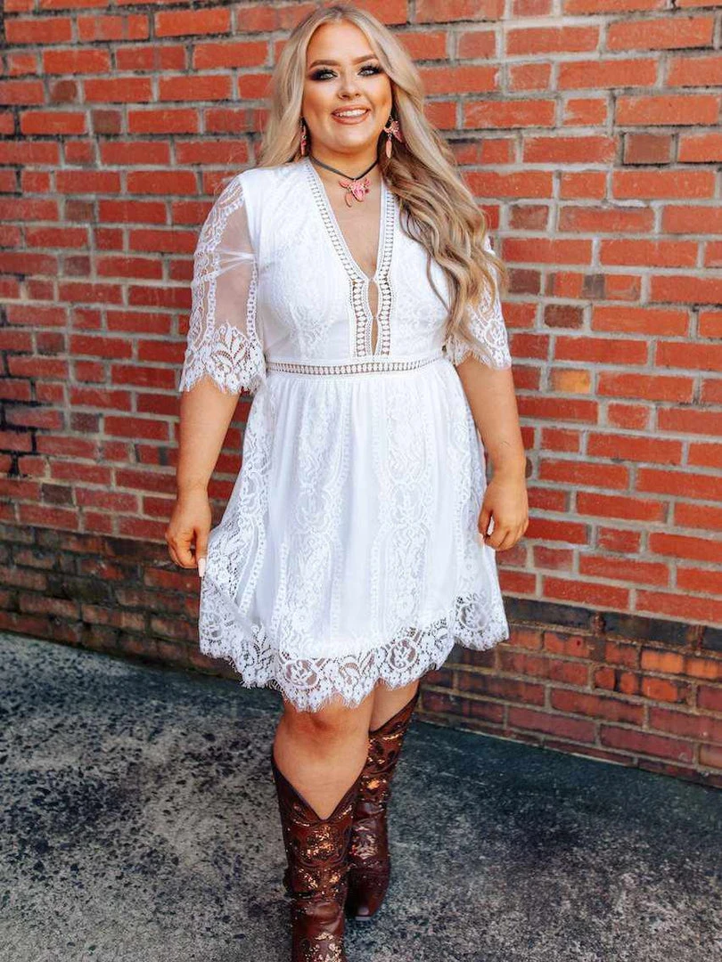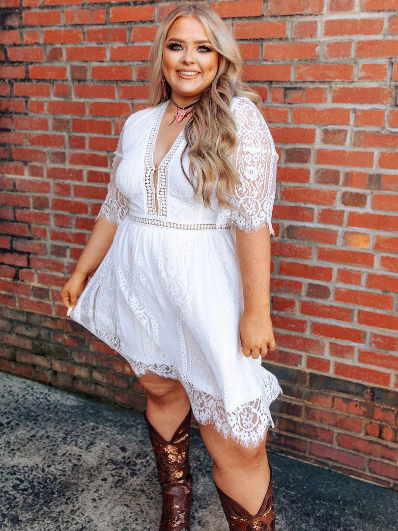 Rustic chic meets hot and sexy in the Anywhere With You Dress. The plunging neckline, sheer waist, and delicate lace trim combine for an edgy and glamourous look that’s perfect for date night or any night of the week when you are out having fun.