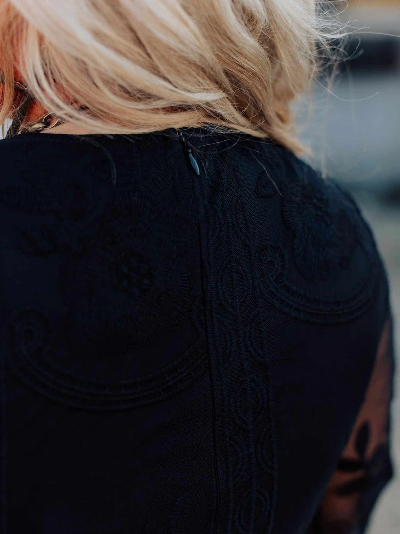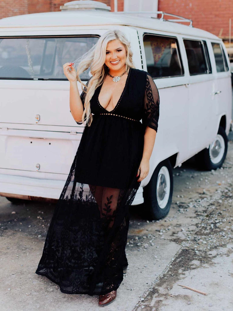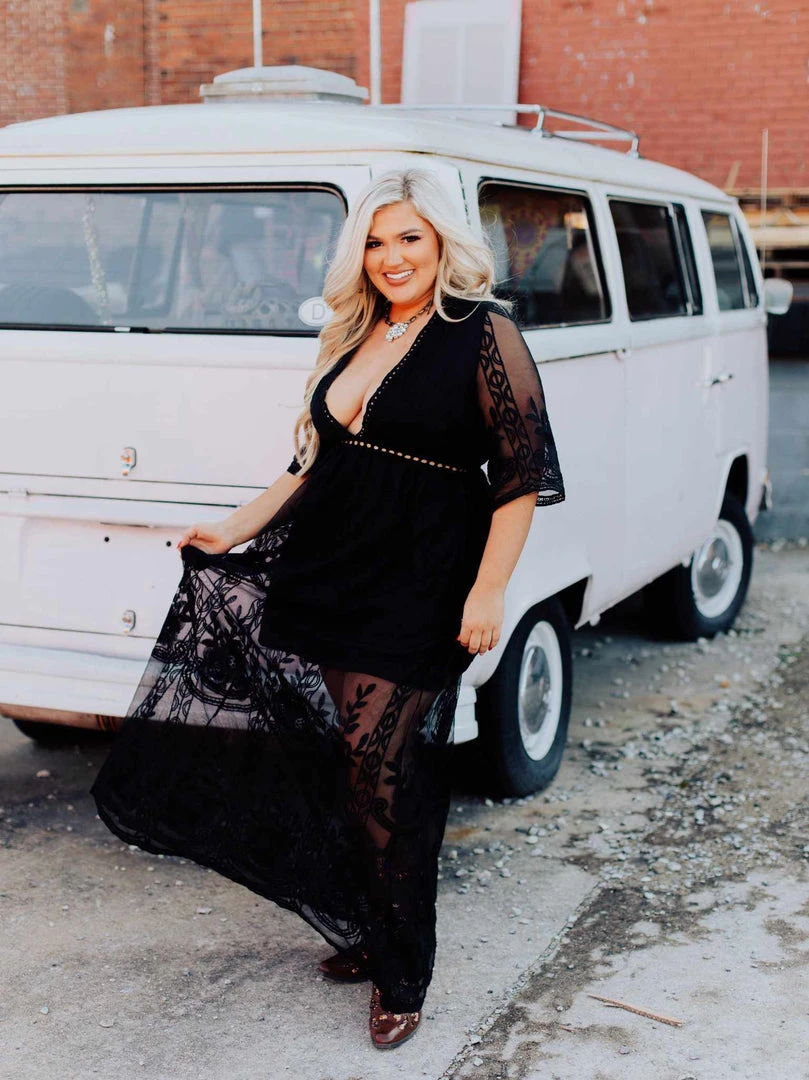 Get lost in the moment with the beautiful Twyla dress. Featuring a long sheer overlay of delicate floral details, trimmed in eyelet lace, over a matching lining. With mid-length sleeves, a deep v-neckline with an eye hook closure, and a zipper back, this is not your momma’s typical rust-colored dress. Part of our Southern Fried Chics Collection, Curvy Chic Approved, and designed by our owner Liz.