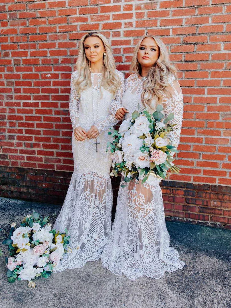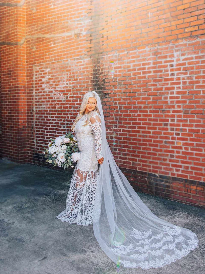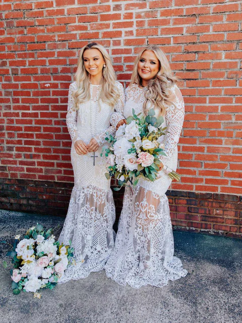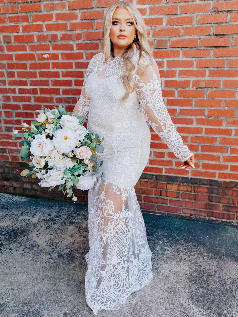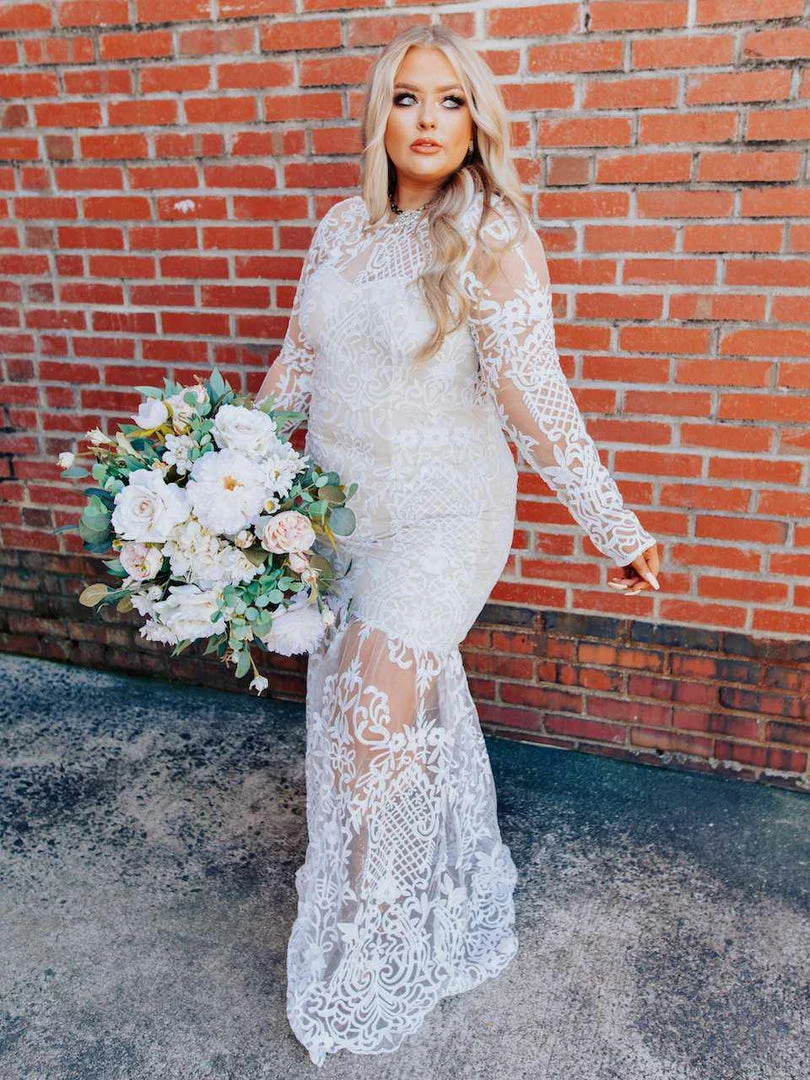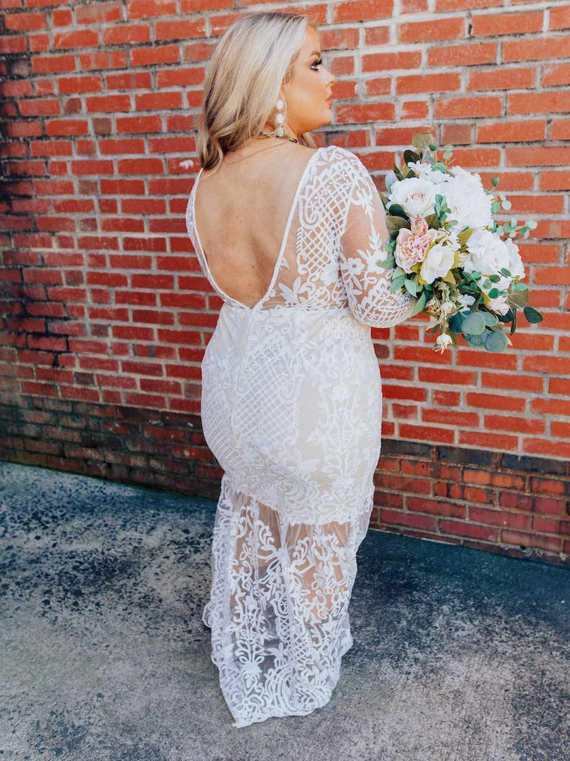 Just imagine how stunning you are going to look walking down the aisle in the World Stands Still dress featuring sheer long sleeves, a lace applique tulle illusion skirt, and a plunging open back.