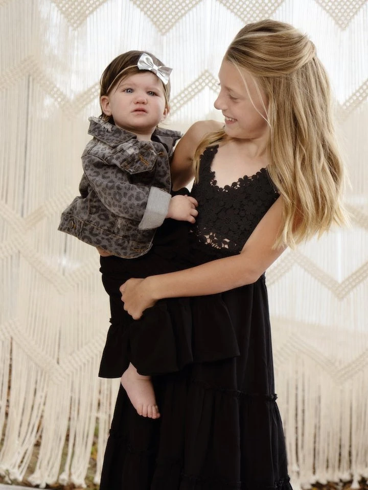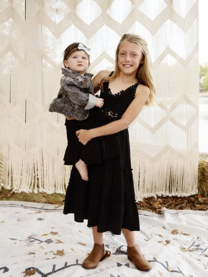 Long, flowy, and too cute! You are bound to fall in love with the Girls Southbound Dress! This ’80s inspired tiered ruffled dress is made for twirling. Trust us… we couldn’t help ourselves either and neither will you. It features a scoop neckline, cross-back adjustable spaghetti straps, and beautiful floral applique details. It’s the most ideal dress for summer fun!