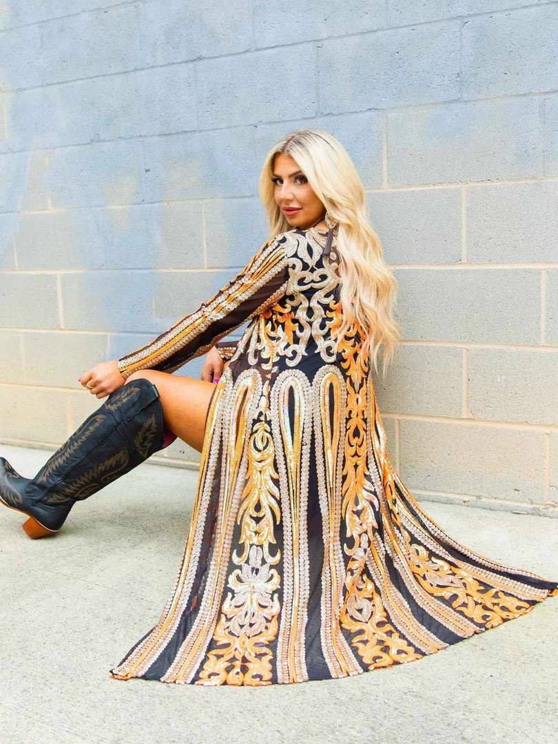 This handmade long sequin duster is absolutely AMAZING! Great for special occasions, dates, or concerts. With its complementary fit, it is sure to have you sparkle and shine anywhere you go! This piece is a LIMITED EDITION! Pair a duster with your favorite tops, bottoms or dresses for a sassy look!