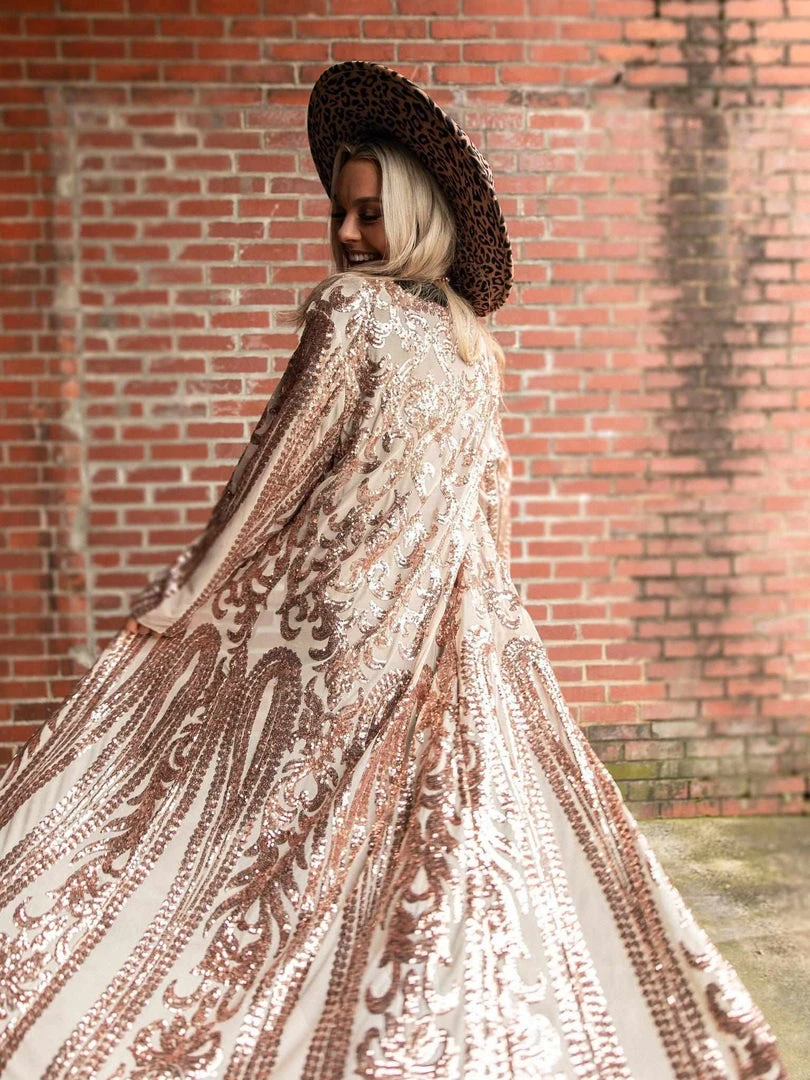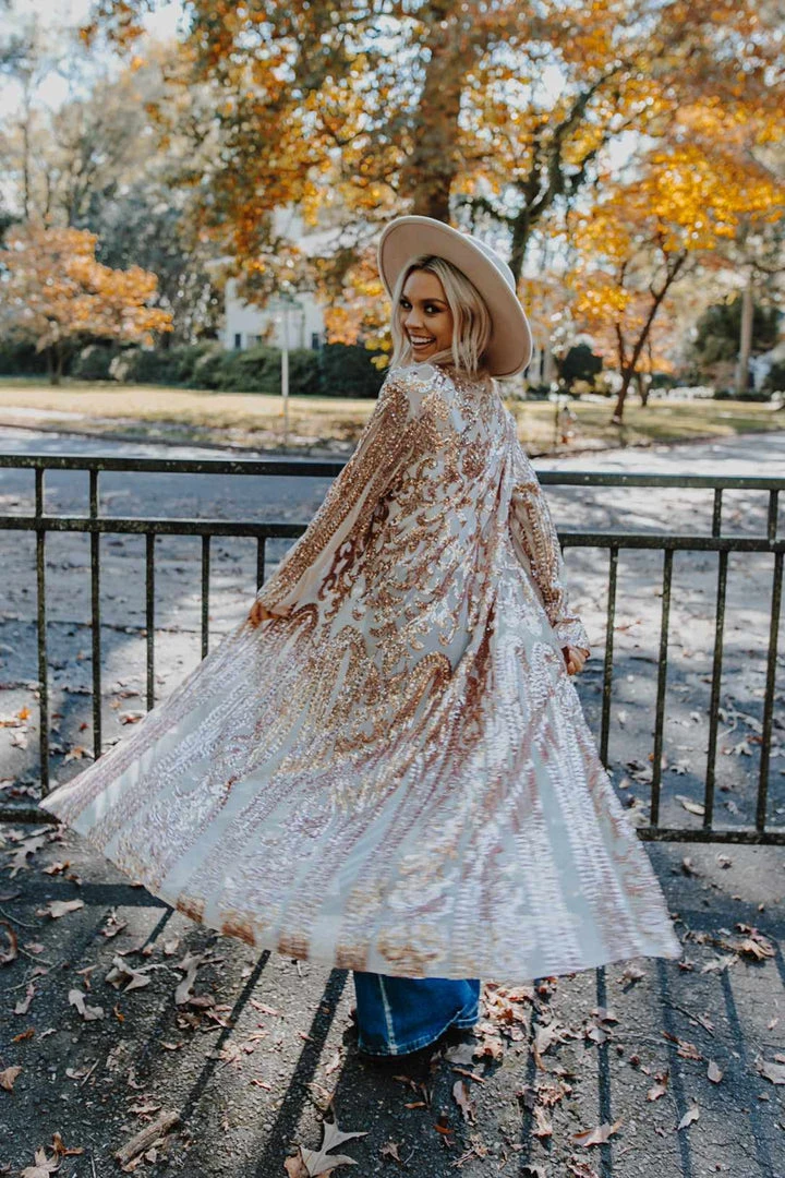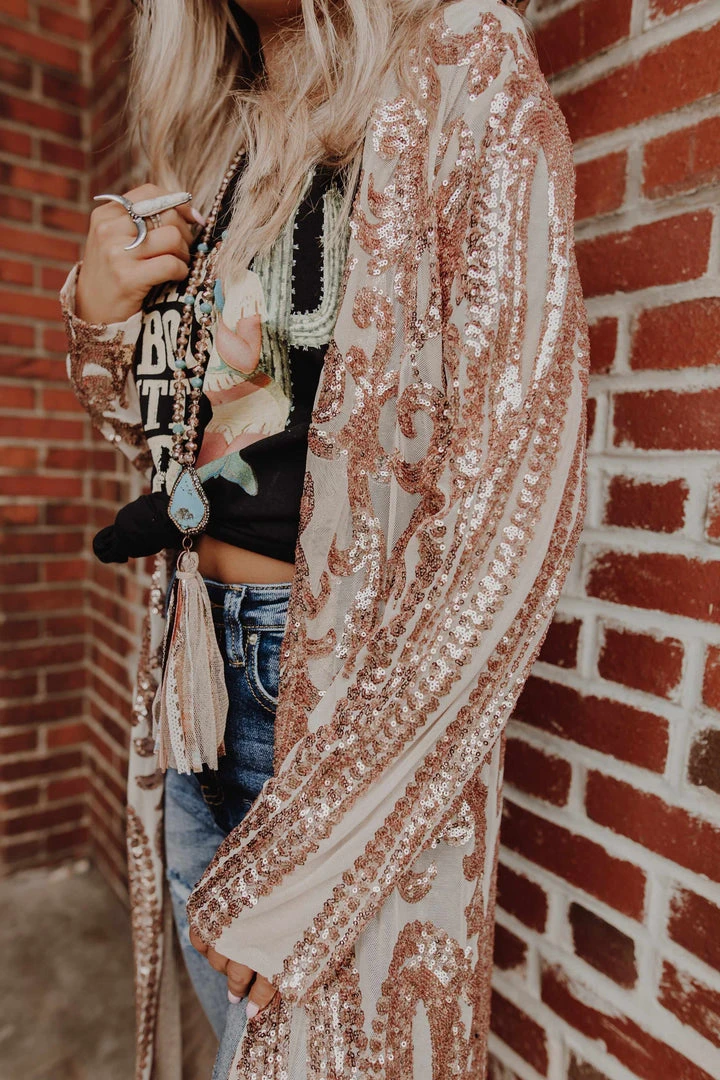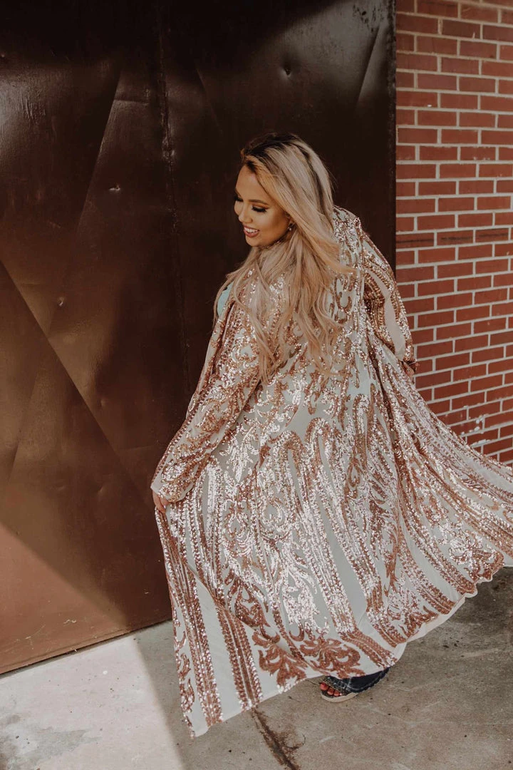 This handmade long kimono sequin duster is absolutely AMAZING! Great for special occasions, dates, or concerts. Even special for holidays like Christmas, New Years, and all year round events. With its lightweight flattering fit, it is sure to have you sparkle and shine anywhere you go! This piece is a LIMITED EDITION! Pair a duster with your favorite tops, bottoms or dresses for a sassy look!