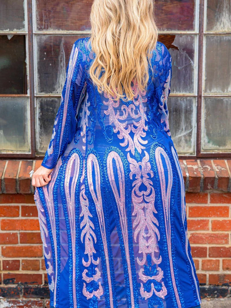 Kimono Style Duster in Blue and Silver with Sequin Detail