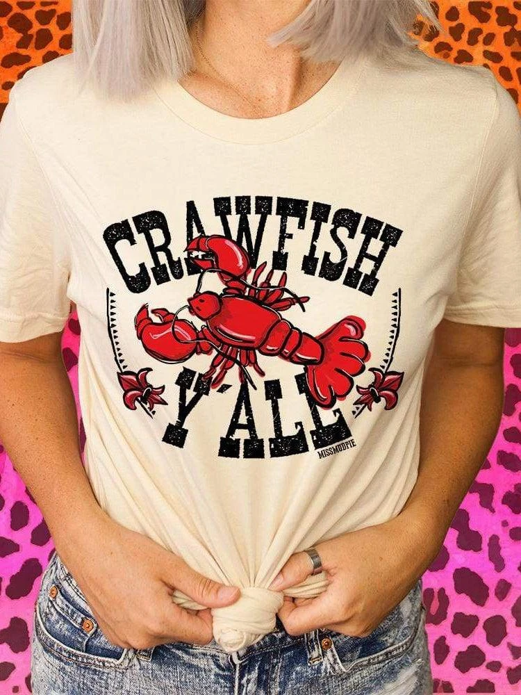 We can’t keep away from graphic tees! This is your tee for all things crawfish! This tee is perfect for layering. Easily dressed up or dressed down! Printed on a unisex super-soft tee. Cream-colored Tee.