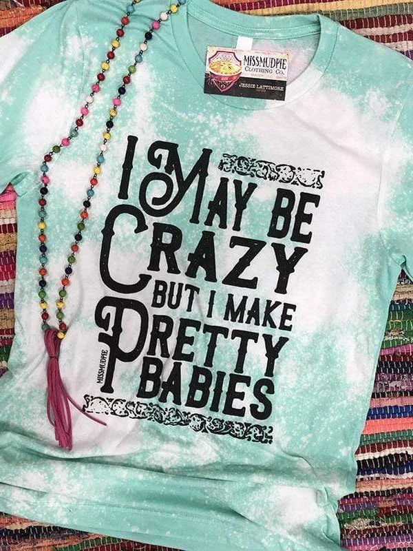 We are in Love! I May Be Crazy but I Make Pretty Babies Tee in bleached teal is a must-have! This is a soft style unisex Bella Canvas shirt.