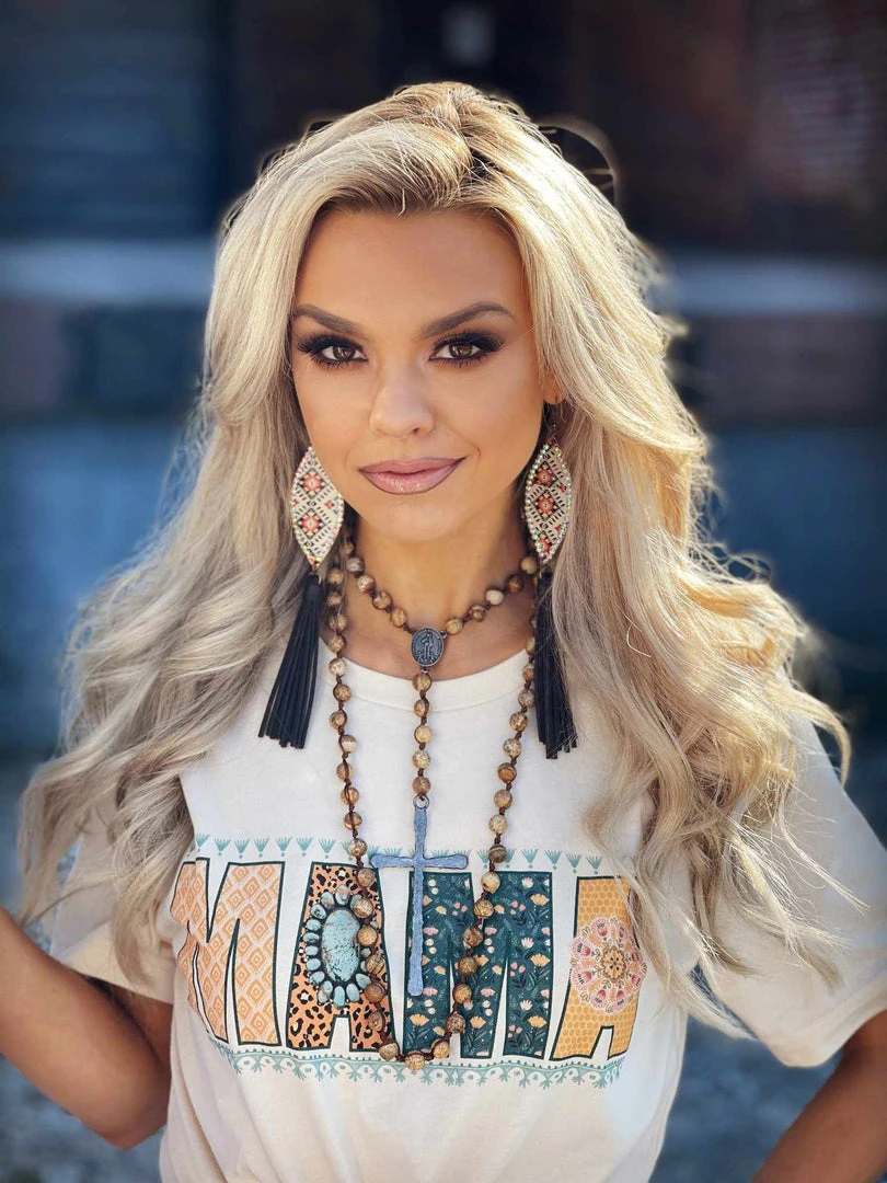 How cute is the Mama tee! All the prints add a finishing touch! Printed on a soft style Bella Canvas Tee! Cream color.