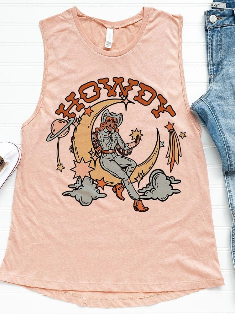 Cosmic howdy cowgirl tank. A graphic tank for your favorite Western look.