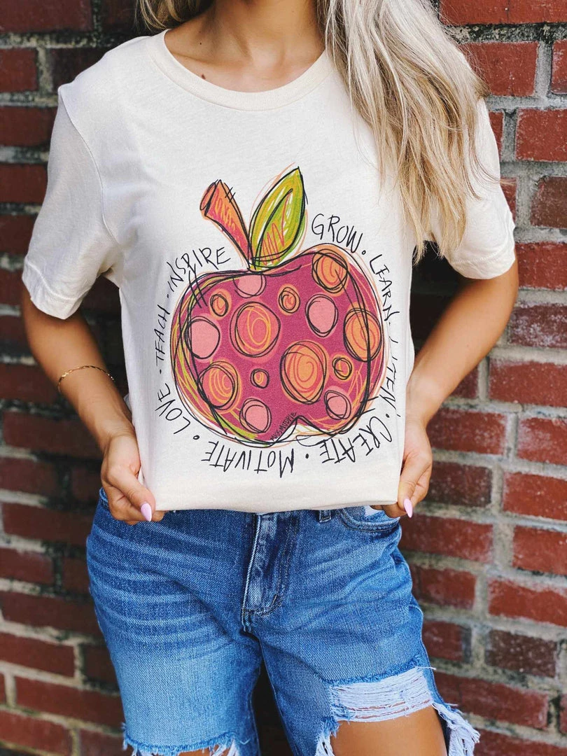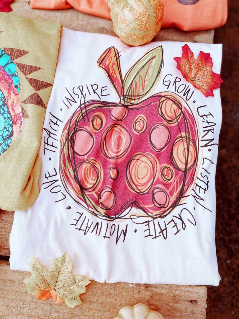 School is back and we love this for all of our teacher friends! This tee has a hand-drawn apple with inspirational words for our teachers! Perfect for the upcoming school days! Printed on a cream, soft style Bella Canvas Tee!