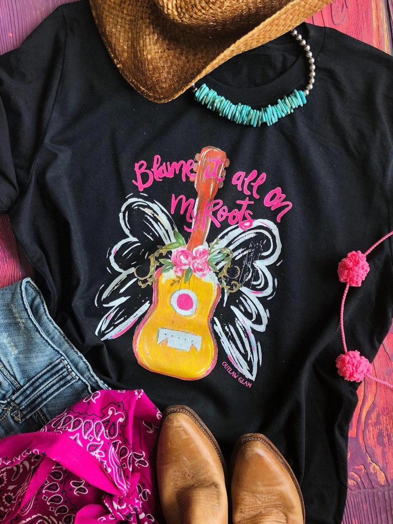 Blame it all on my roots. Did you show up in boots?! I’m sure you did chic! Did you ruin that black-tie affair too? That’s why you need this tee! To complete this look, pair with your favorite types of denim and western boots! Printed on a soft style Bella Canvas Tee!