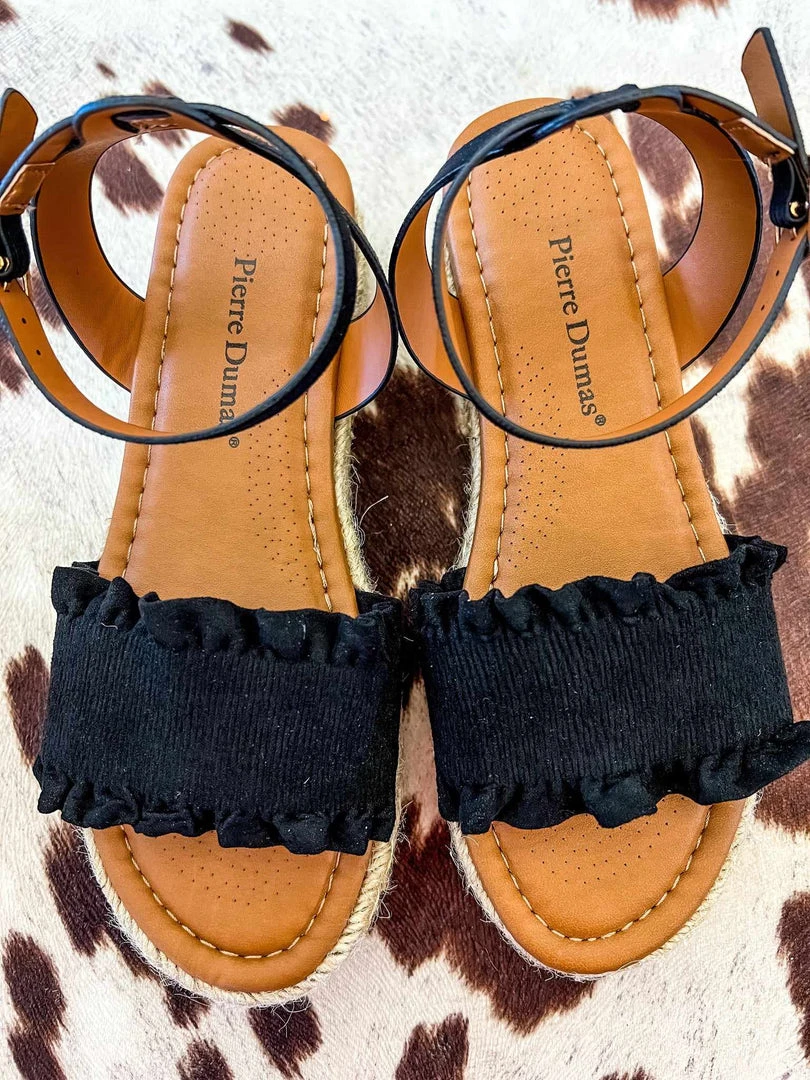 Back to the basics in these black platform sandals. Pairs perfectly with your favorite sundress or graphic tees!
