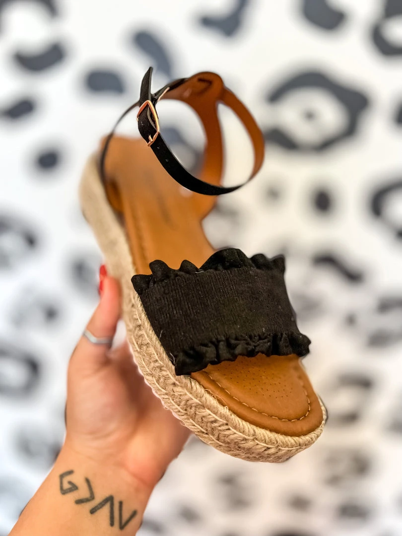 Black Espadrille Slingback Platform Sandals