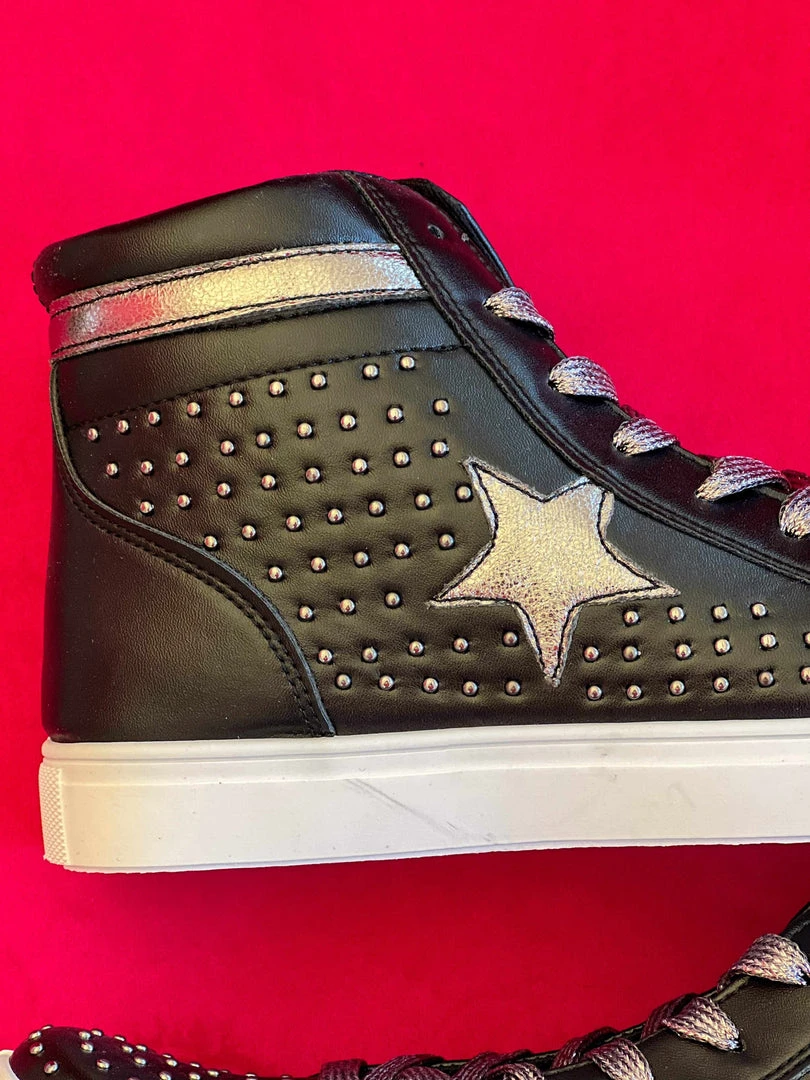 Gold studded high tops – Yes, Please! These sneakers are the just the right blend of sporty and edgy with gold studs throughout and a star along the side. Comfy enough for all day wear these will go great with jeans or even a funky addition to a little black dress!