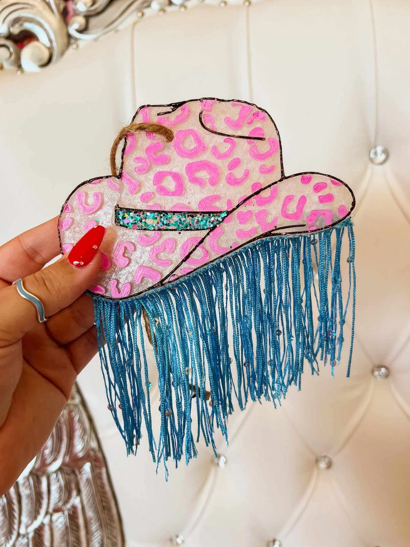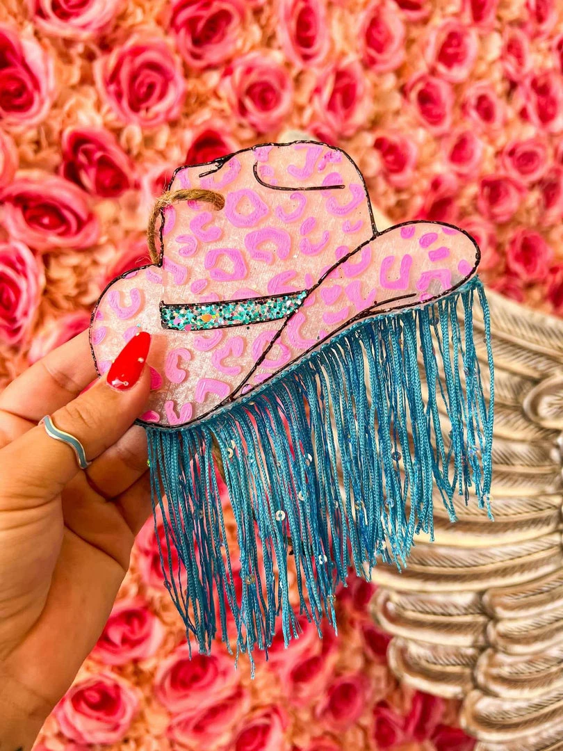 Southern Custom Designs Leopard Cowgirl Hat And Fringe Freshie