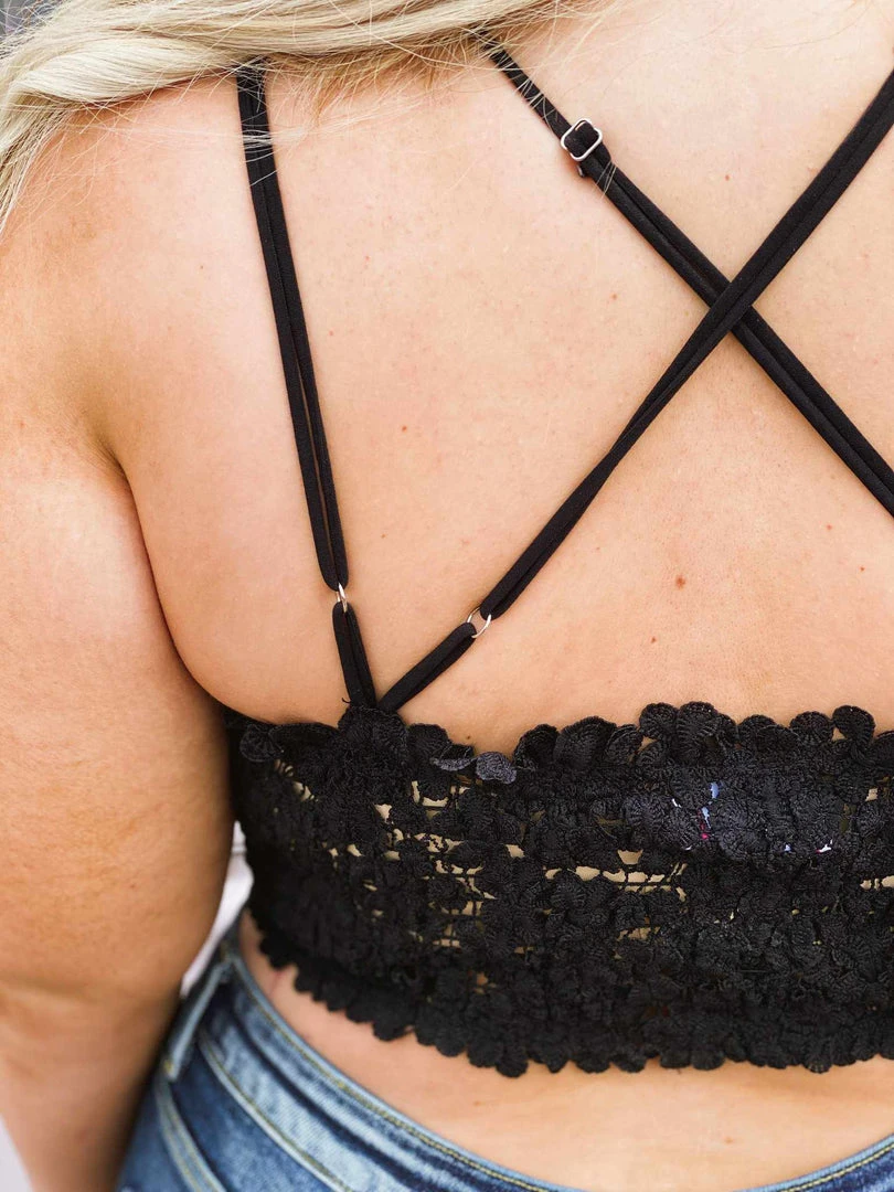 We are flirting with this one! This bralette is made for feeling and looking good! Create a little enchantment in your life in our Flirty Floral Bralette. This fully floral detailed bralette is very stretchy and has a scalloped neckline with adjustable straps. It has the dual criss-cross straps that we adore and padded bust to give that little lift and full coverage. This bralette is a pullover with no closures. Also available in other colors! Part of our SFC Collection!