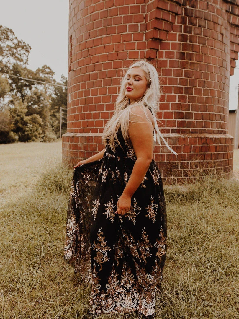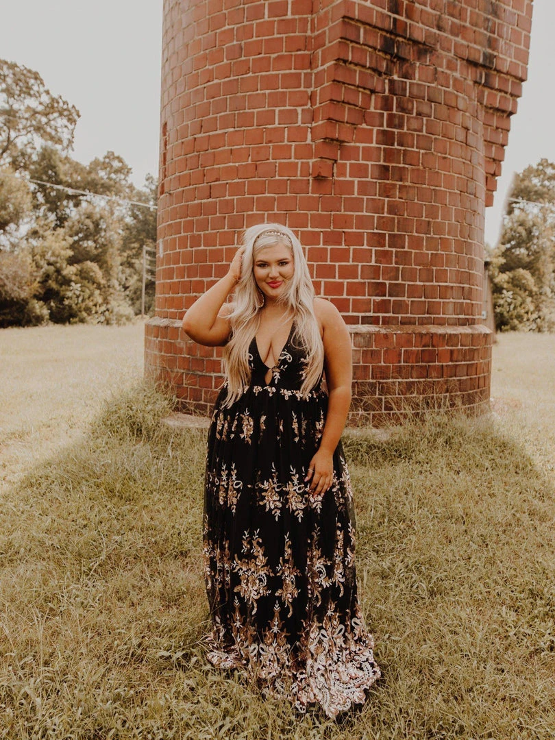 Simply beautiful. Do you have a special event approaching? Homecoming, Prom, Winter Formal? If not, that’s okay – you can still wear this dress to the grocery store. We won’t judge. There is no doubt that you will turn heads in this show-stopping piece designed by our owner, Liz. The rose gold floral patterned sequins give it the extra touch to bring out your inner Goddess. Features a zipper back and a little stretch to give you some room to dance the night away. This dress is made to be altered to fit you perfectly if needed.