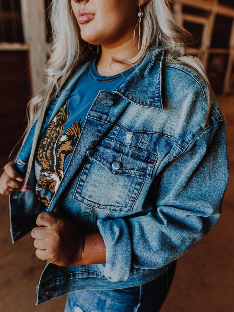 WOW! Our “SFC Denim Jacket” is available in dark wash and light wash with the softest denim! This jacket has STRETCH and is a cropped fit. Perfect for any body type. Part of the Chics Collection and Curvy Chic Certified with sizes XS-3XL! Designed by our owner Liz. Manufactured by Southern Fried Chics.