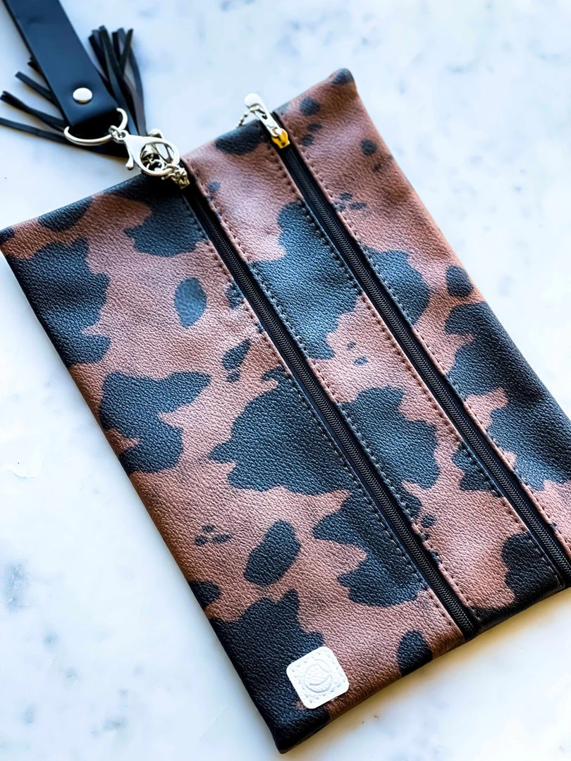 Mooovin On Up Cow Hide Style Double Zipper Versi Bag