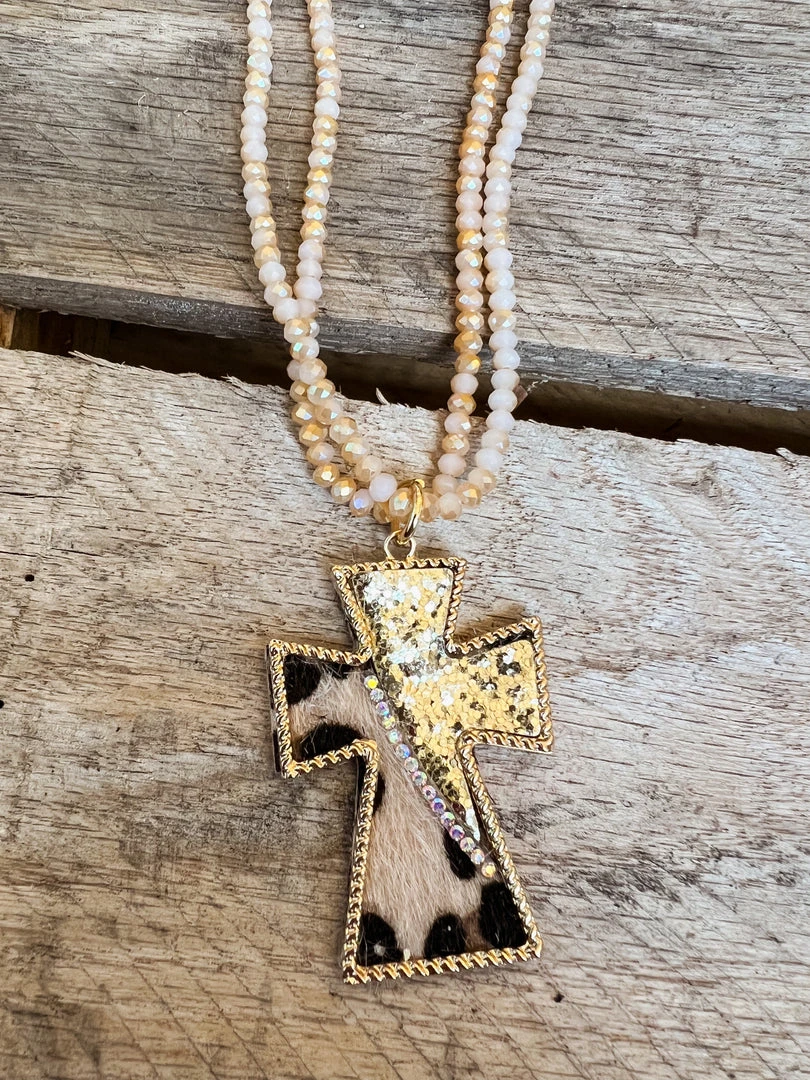 This ain’t your grandma’s cross necklace! This beauty is half golden sparkle and half leopard for a western style cross necklace that will make you the talk of the church social! Cowgirl inspired – Jesus approved.