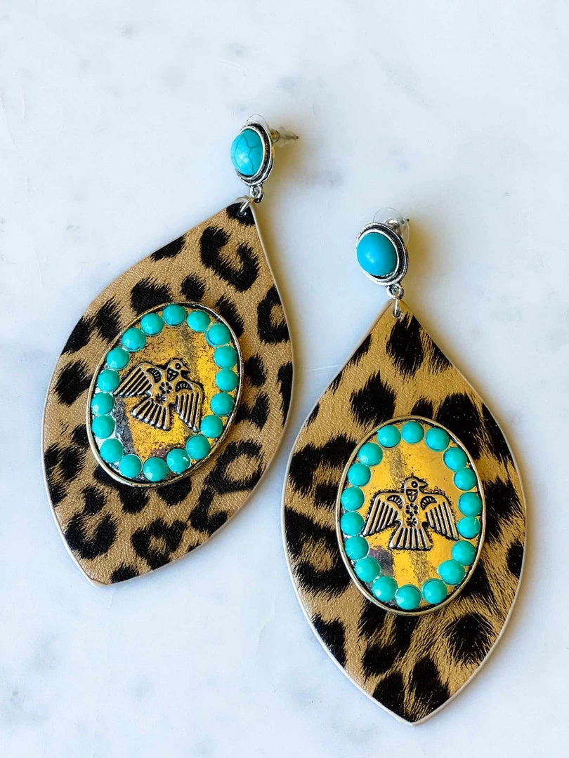 Your Fashion Wholesale Summer Fever Collection Turquoise And Leopard Pendent Earrings